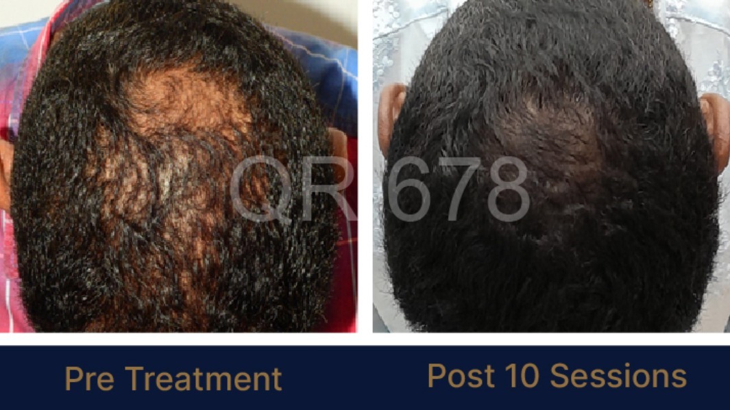 QR678 hair treatment is a non-surgical procedure used to reduce hair fall and promote hair regrowth. It involves microinjections of a specialized growth factor solution directly into the scalp, targeting weak or damaged hair follicles. The treatment helps strengthen existing hair, stimulate new hair growth, and improve hair density over time. QR678 is suitable for both men and women and is commonly used for conditions like androgenetic alopecia. With multiple sessions and proper maintenance, it can effectively improve scalp health and hair quality.